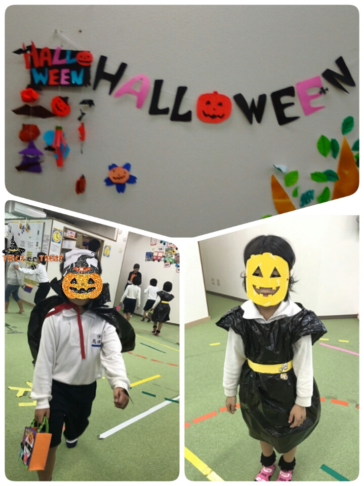 カボチャのお面で すっかりハロウィン気分で 大はしゃぎ❢