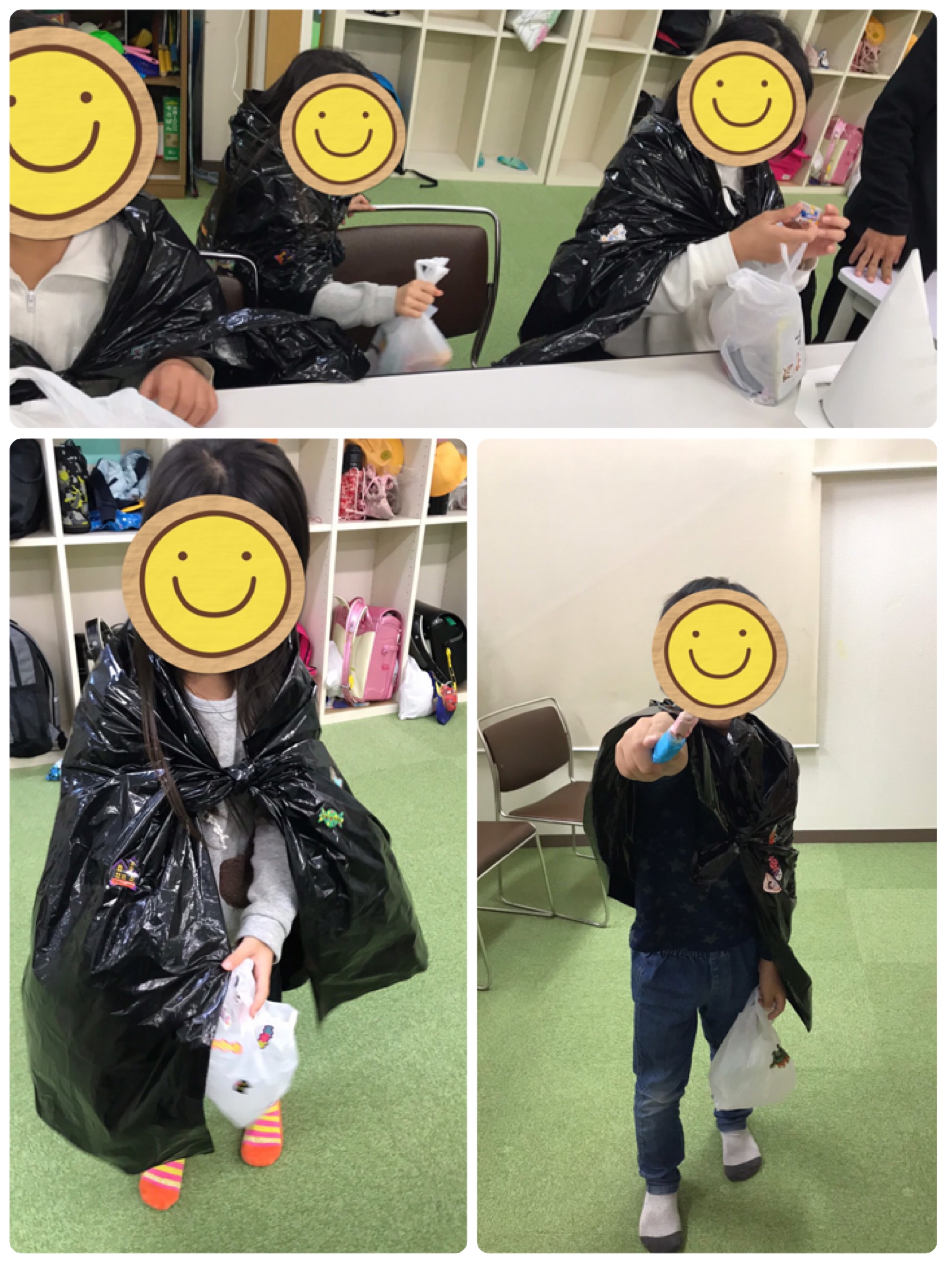 平日の30日はビニールで作ったマントにシールで飾り付けをし、