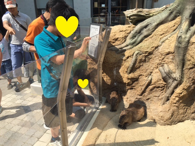 いままで魚ばかりだったのが、かわいいカピバラの展示になってみんなの顔から笑顔がこぼれていました