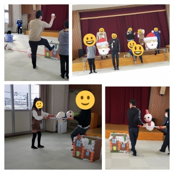 午前中には本物の雪合戦もできて大喜びでした。サンタクロースさんからプレゼントもいただき楽しい時間をすごせました。今回も荒崎地区センターさんにお世話になりました。ありがとうございました。