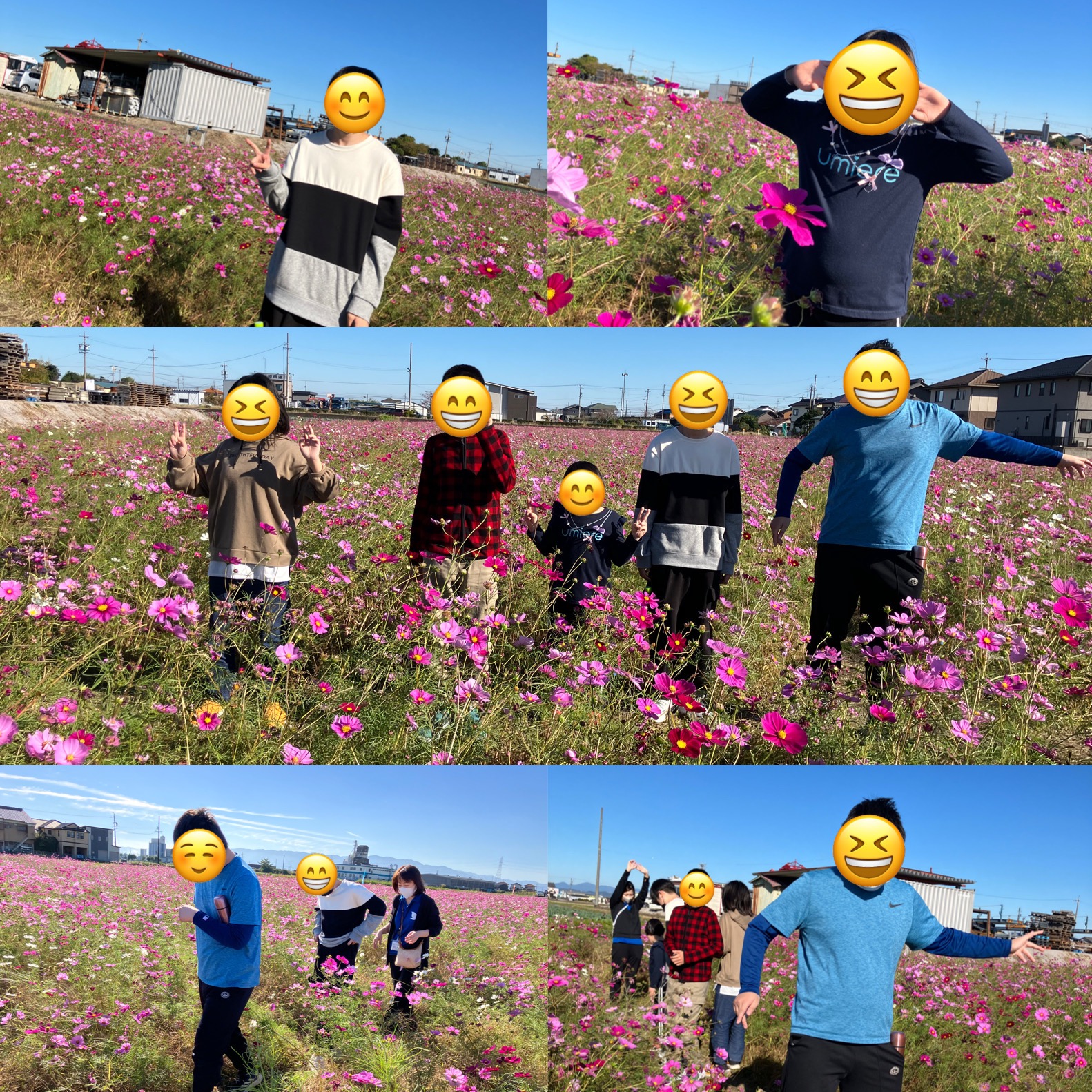 11月の土曜日の活動です。小春日和のとても穏やかな気持ちの良い日だったので墨俣にあるコスモス畑を散策しました。色とりどりのコスモスが辺り一面に広がっていてとてもきれいでした。コスモス畑をみんなで散策。秋を思い切り感じた一日となりました。