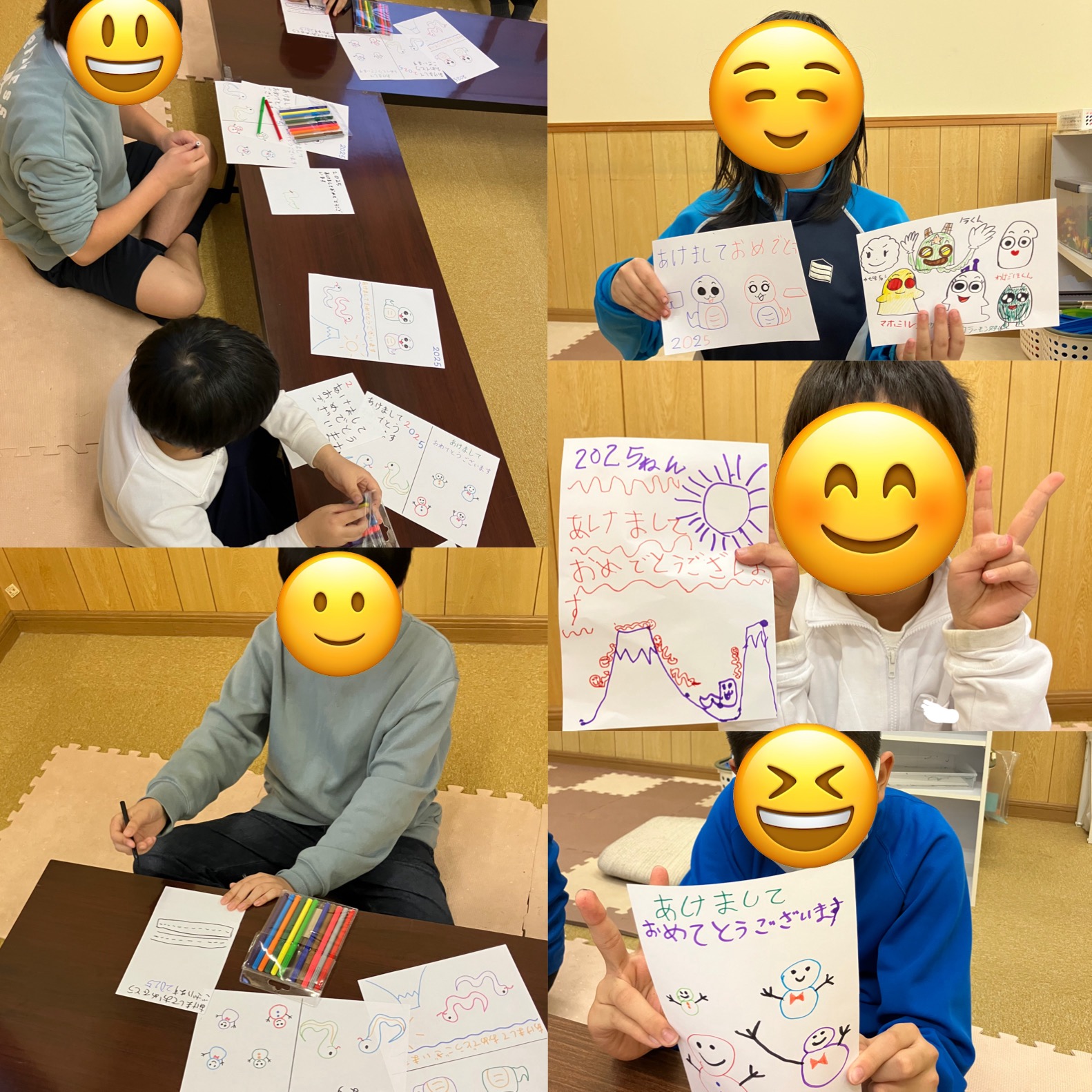 見本はありますが、それぞれのアイデアも入れて、素敵な年賀状ができました。