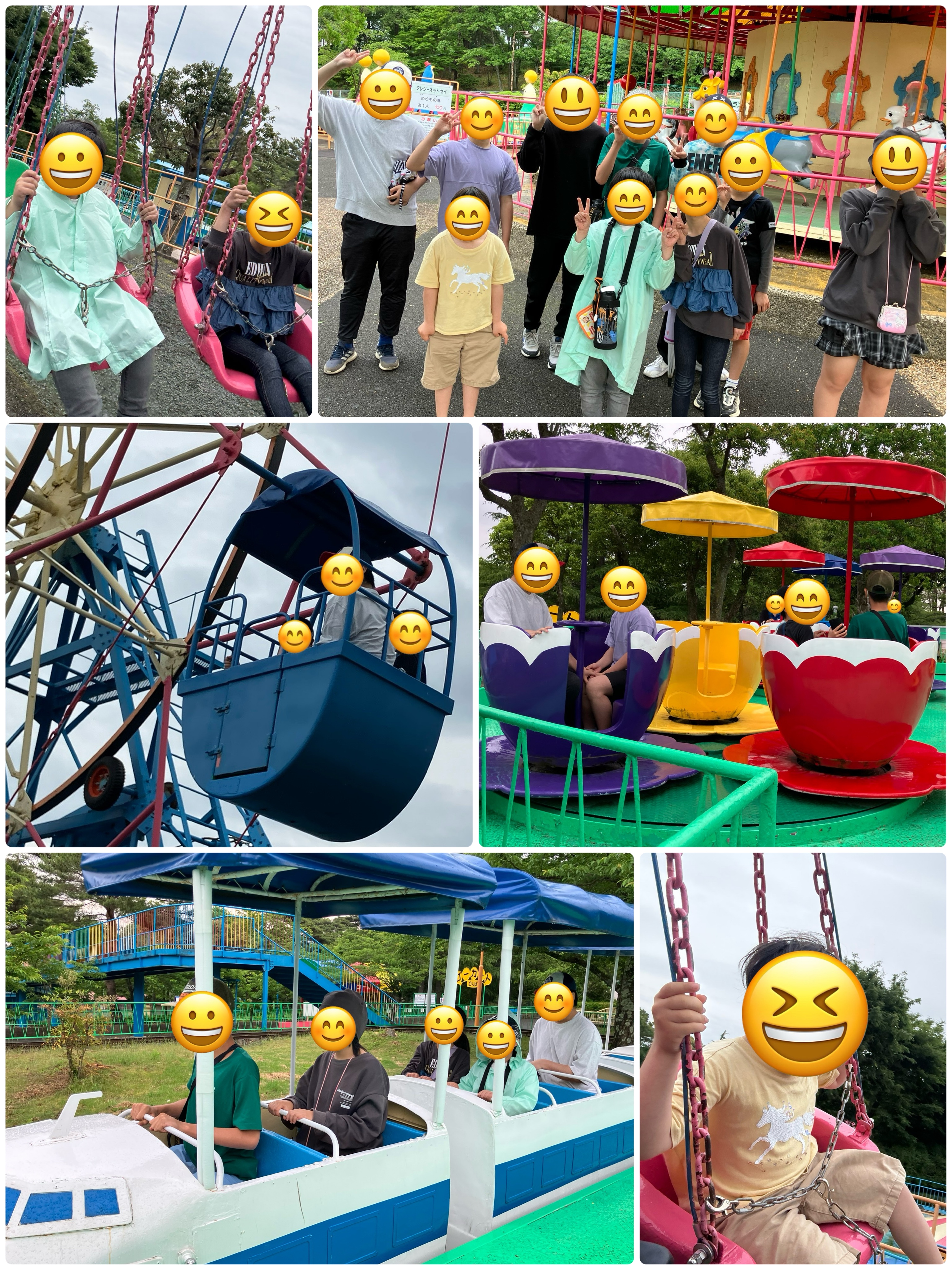 養老ランドへ行きました。あいにくの雨模様でしたが、幸い小雨で好きな乗り物に乗って楽しむことができました。チェーンブランコが大人気でした。