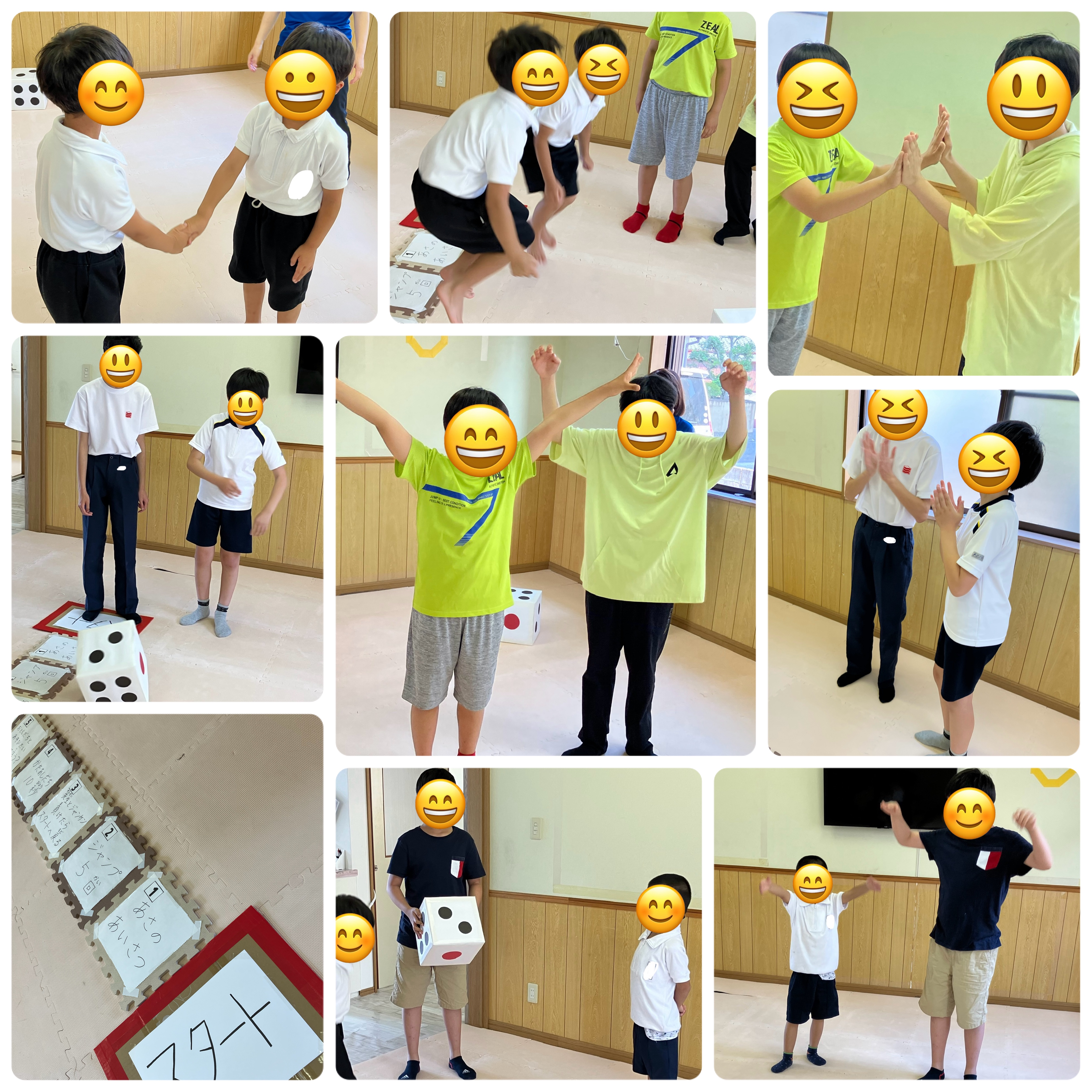 「遊びの輪の中に入りたいときは、なんというのかな?」「大笑いをする」「高速拍手」などのお題をクリアしてゴールできました。