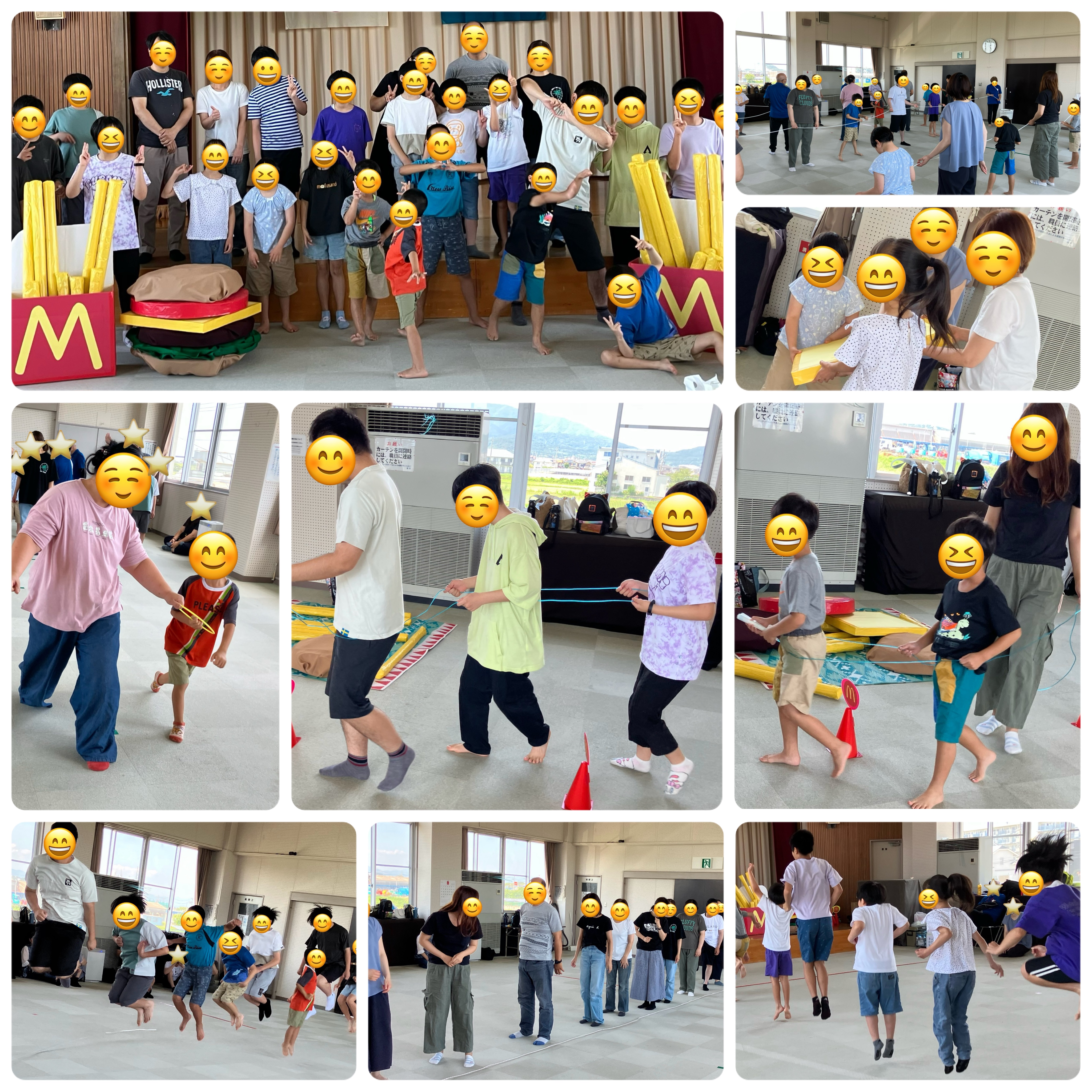 6月28日土曜日に荒崎地区センターで親子運動会を行いました。11家族の方と併せて合計33名という沢山の方にご参加いただき本当にありがとうございました。今回のプログラムは「協力」がテーマです。サイコロリレー・バトン送り・ハンバーガーセットリレー・大縄跳びを、家族、お友達と協力して楽しく競技をすることができました。また、大縄跳びでは大人VS子どもということで、お子さん方は、お父さんお母さんが跳んでいる様子をみて、誇らしげに応援する姿が見られとても嬉しくなりました。親子で楽しんでもらえたかなと思います。来年も企画したいと思いますので是非また参加してみてくださいね。