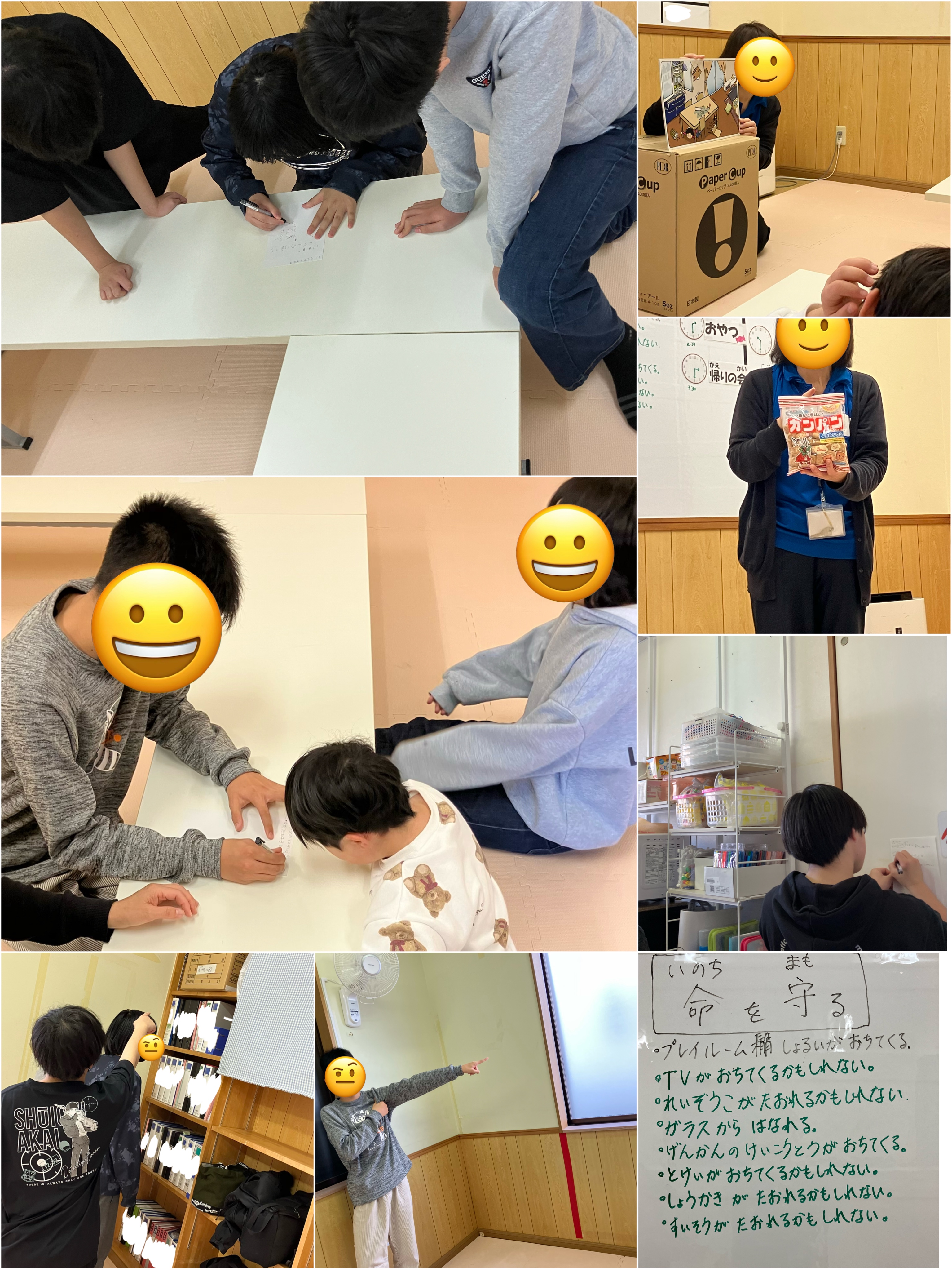今回は、地震が起きた時、ピュアの中のどんなところが危ないかな?と、グループになって探してもらいました!
