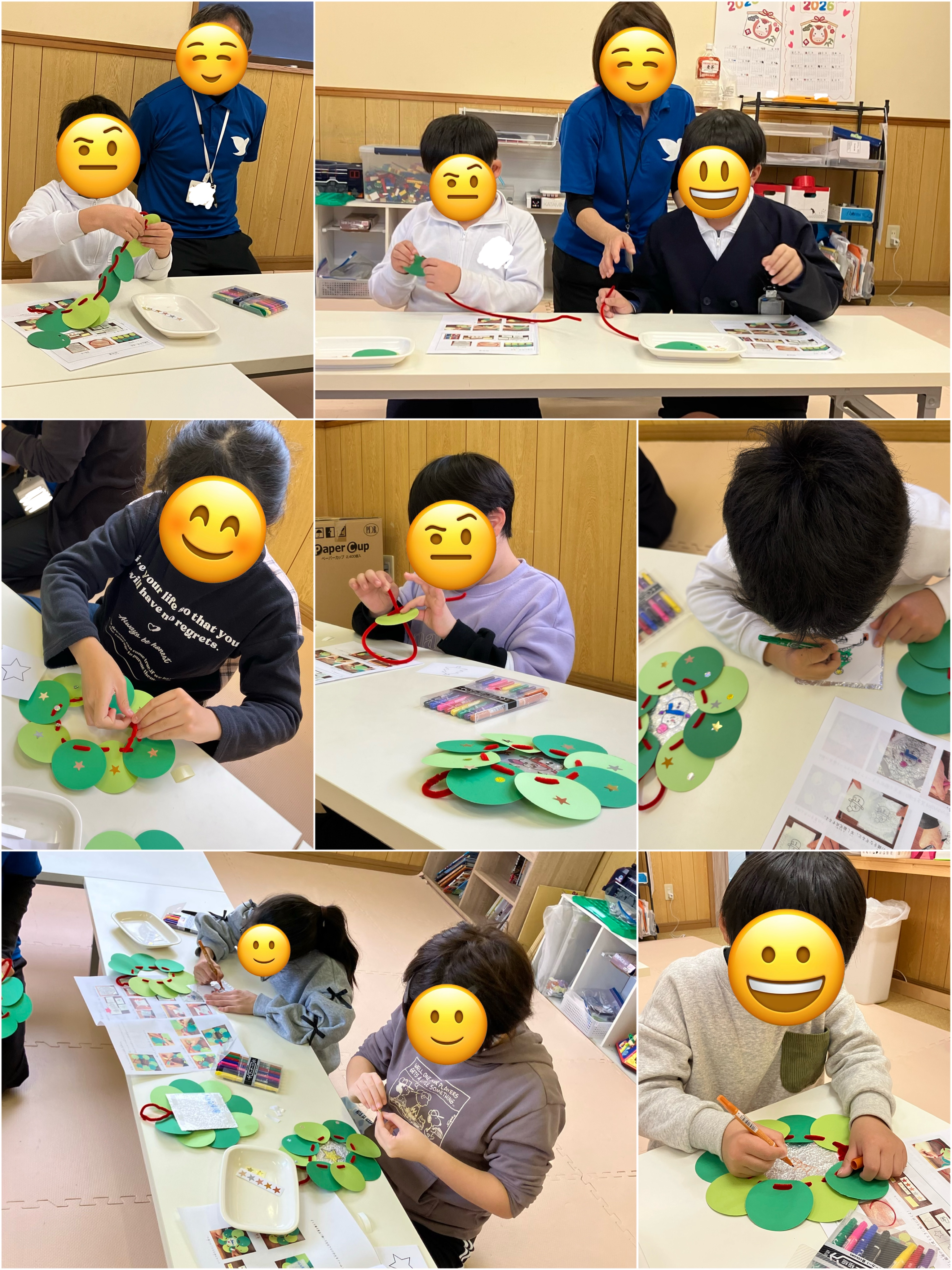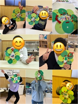 リースの真ん中には自分たちで写し絵をしたステンドグラス風の絵をつけて完成✨