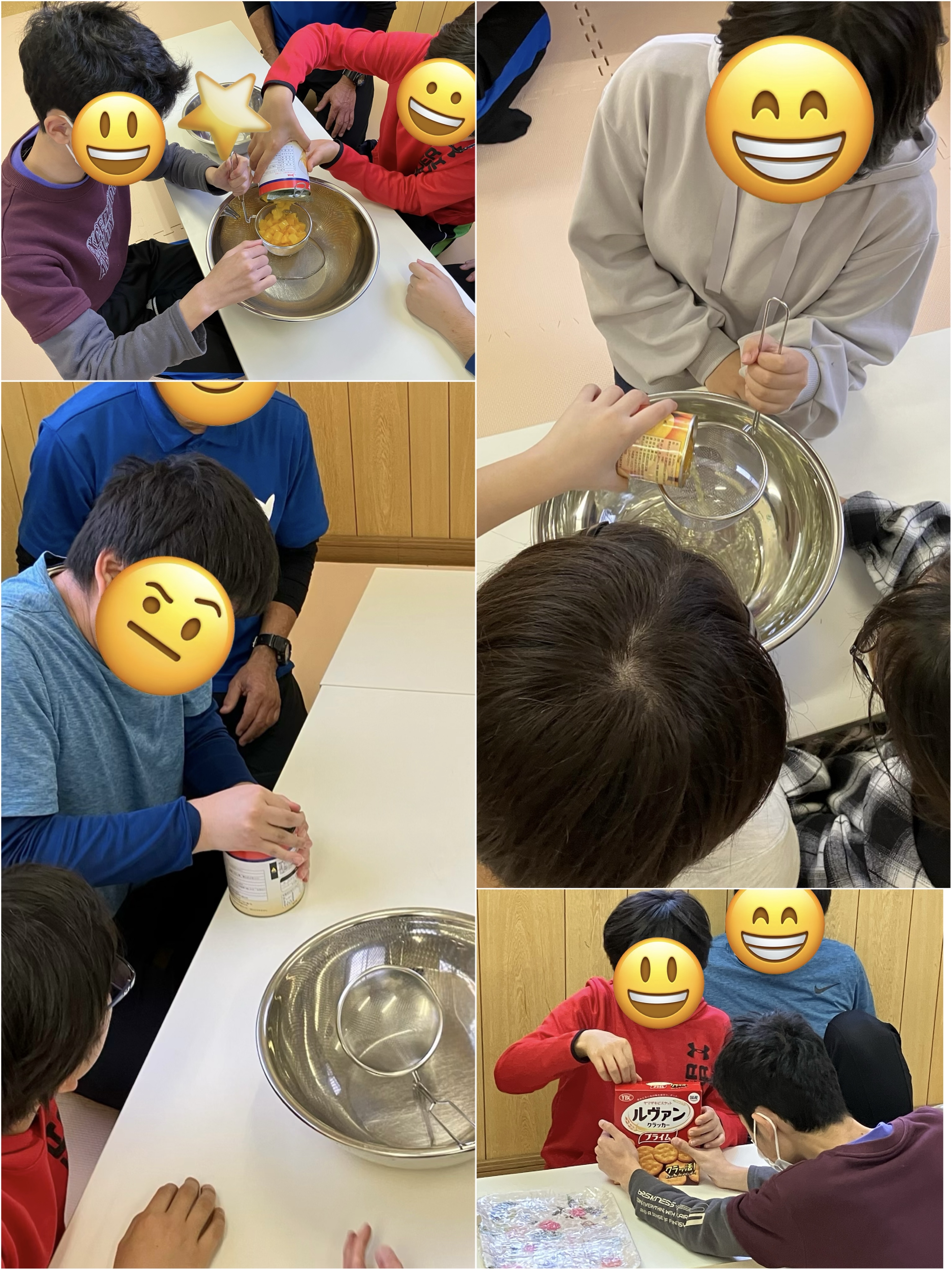 学校が冬休みに入ったお友達は買い物にも行ってくれ、缶や袋を開けて、みんなが作りやすいように準備です♪