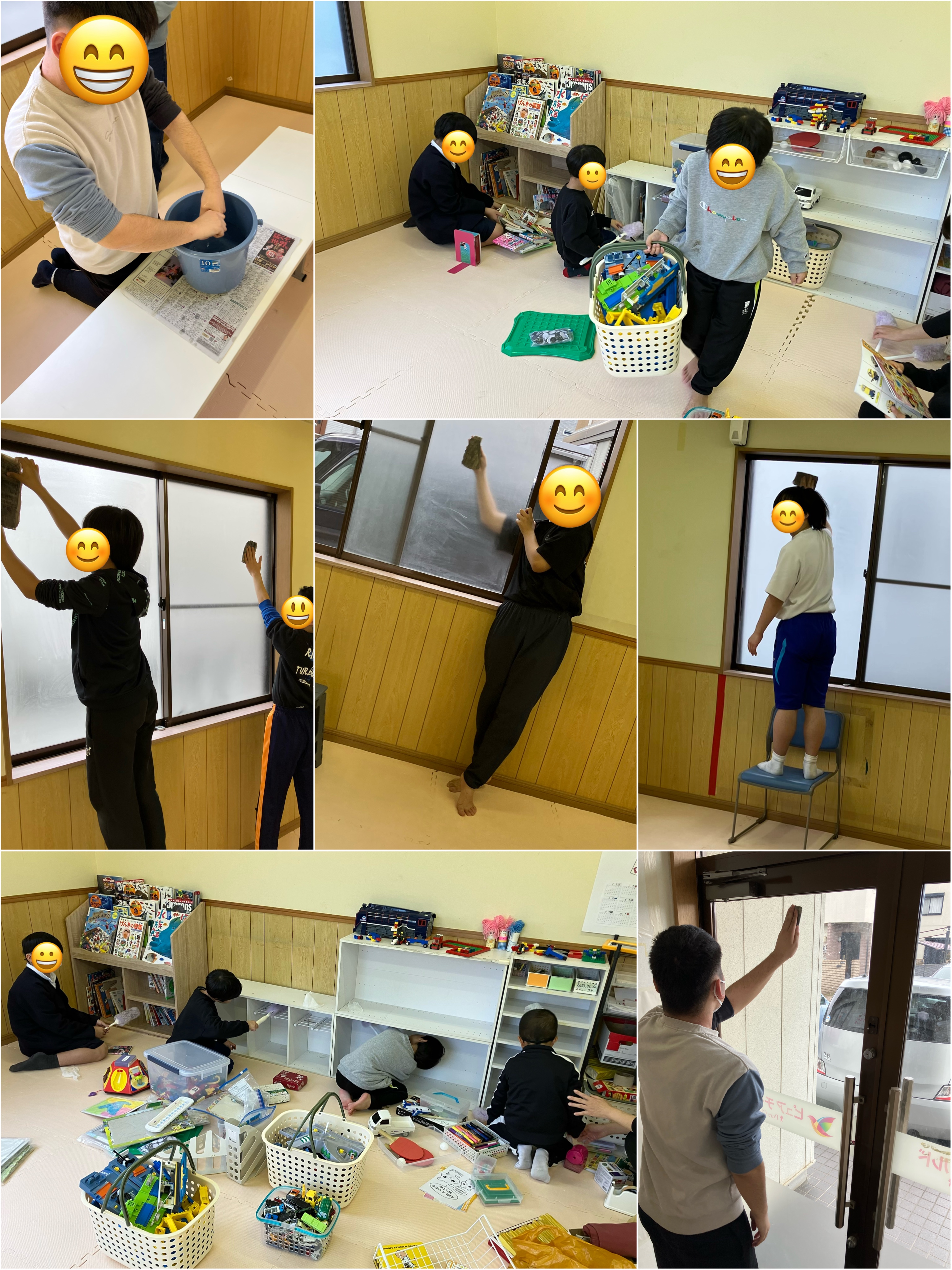 全部おもちゃを出して掃除をしたり、埃がたまっているところの誇りとりをお願いしました。