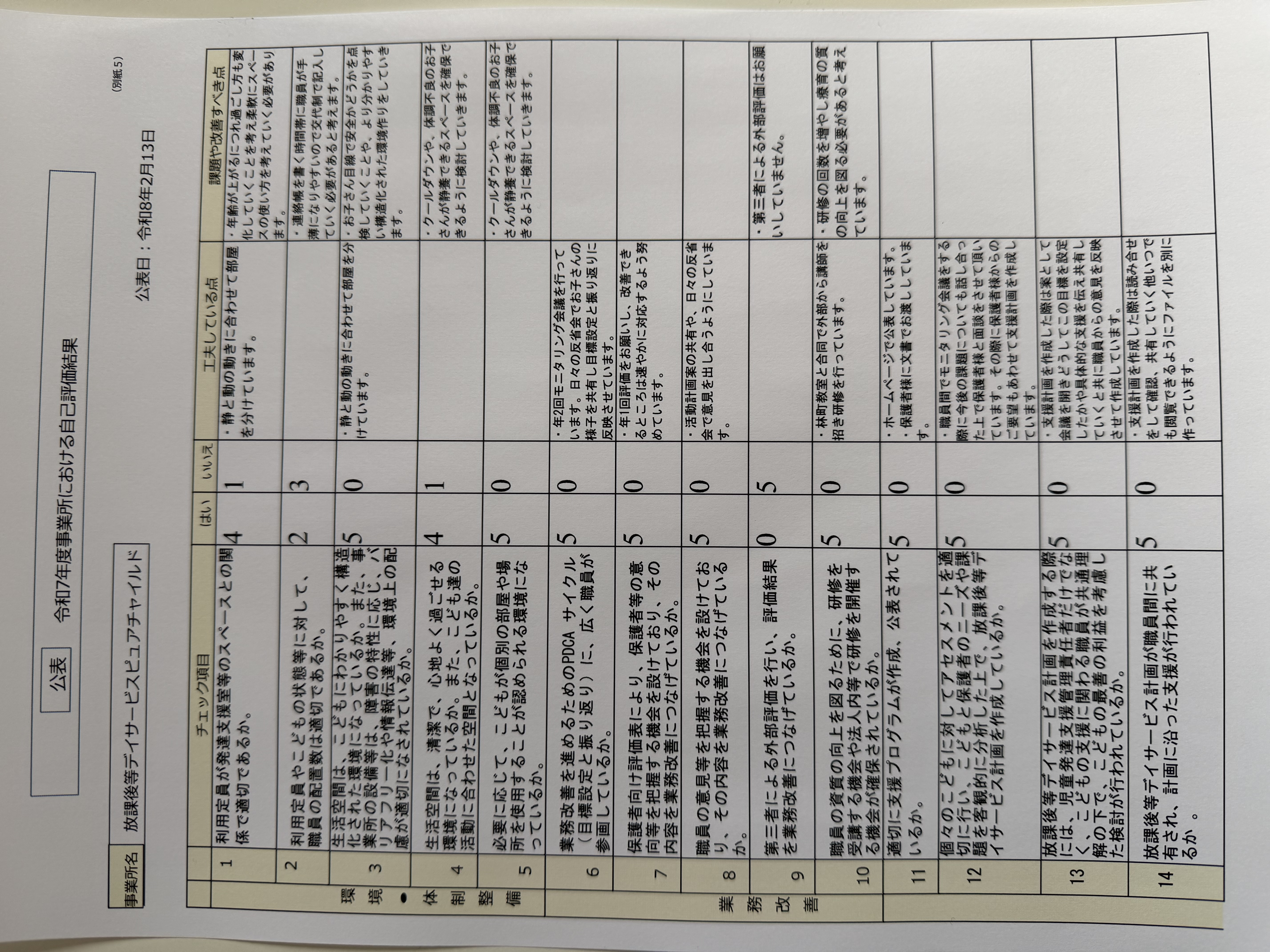 令和7年度保護者向け事業所評価表及び事業所における自己評価表の公表