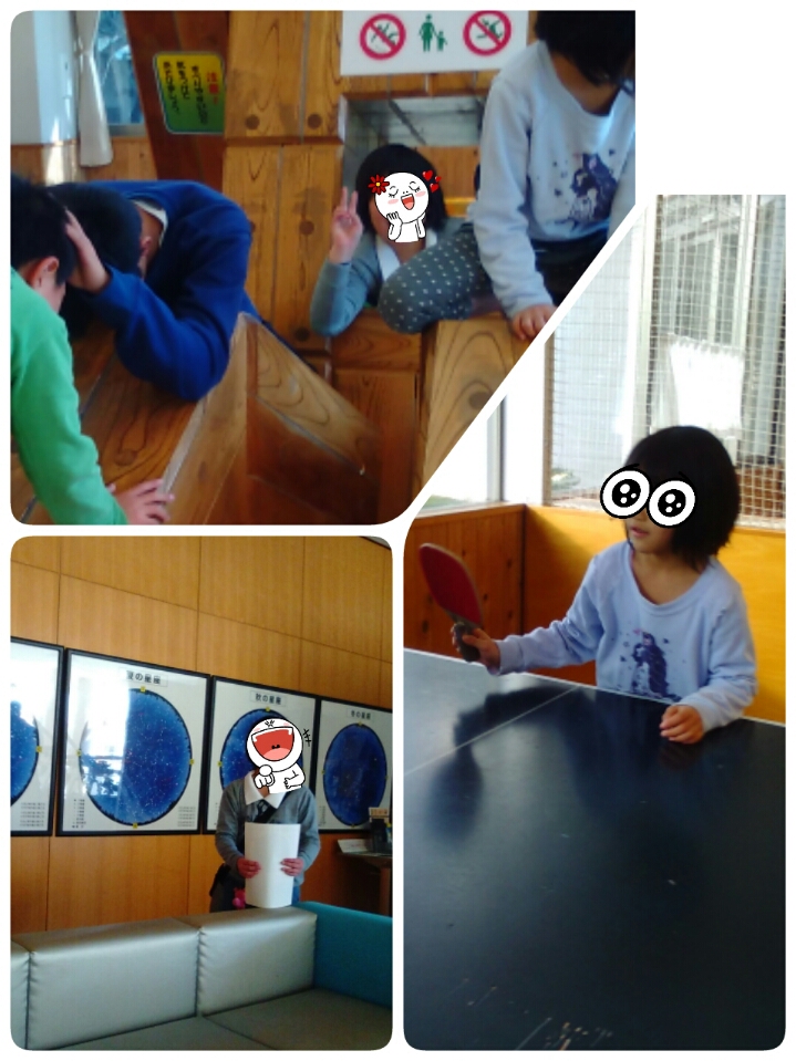 パソコンで お絵かきしたり 卓球したり 竹馬体験もしました。
