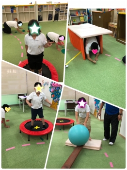 マットで前転するだけで なかなかコースを繋げての取り組みができませんでした。