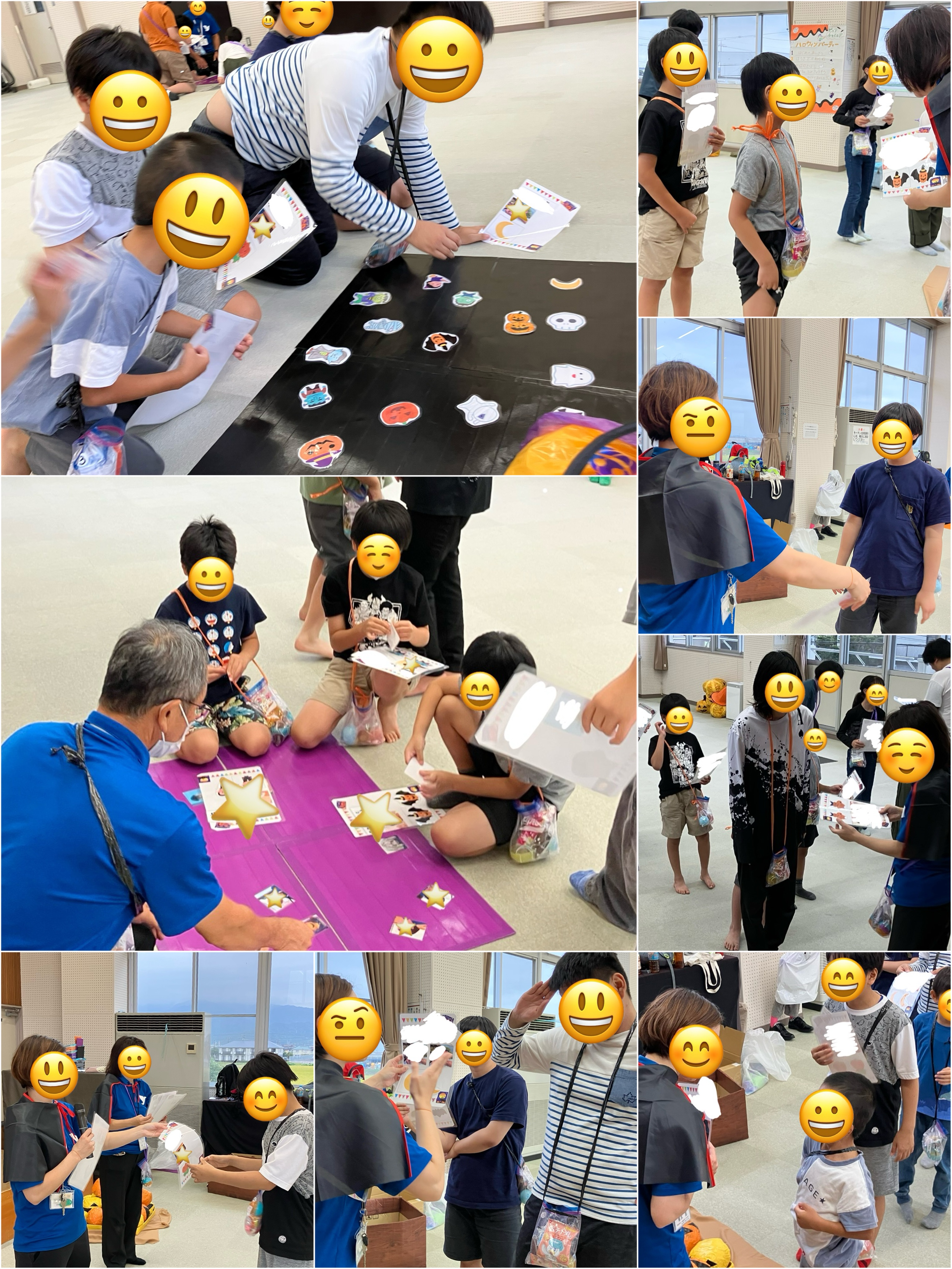 ゲームごとにお菓子がもらえるので、みんな肩にお菓子袋をかけてゲームをしました♪