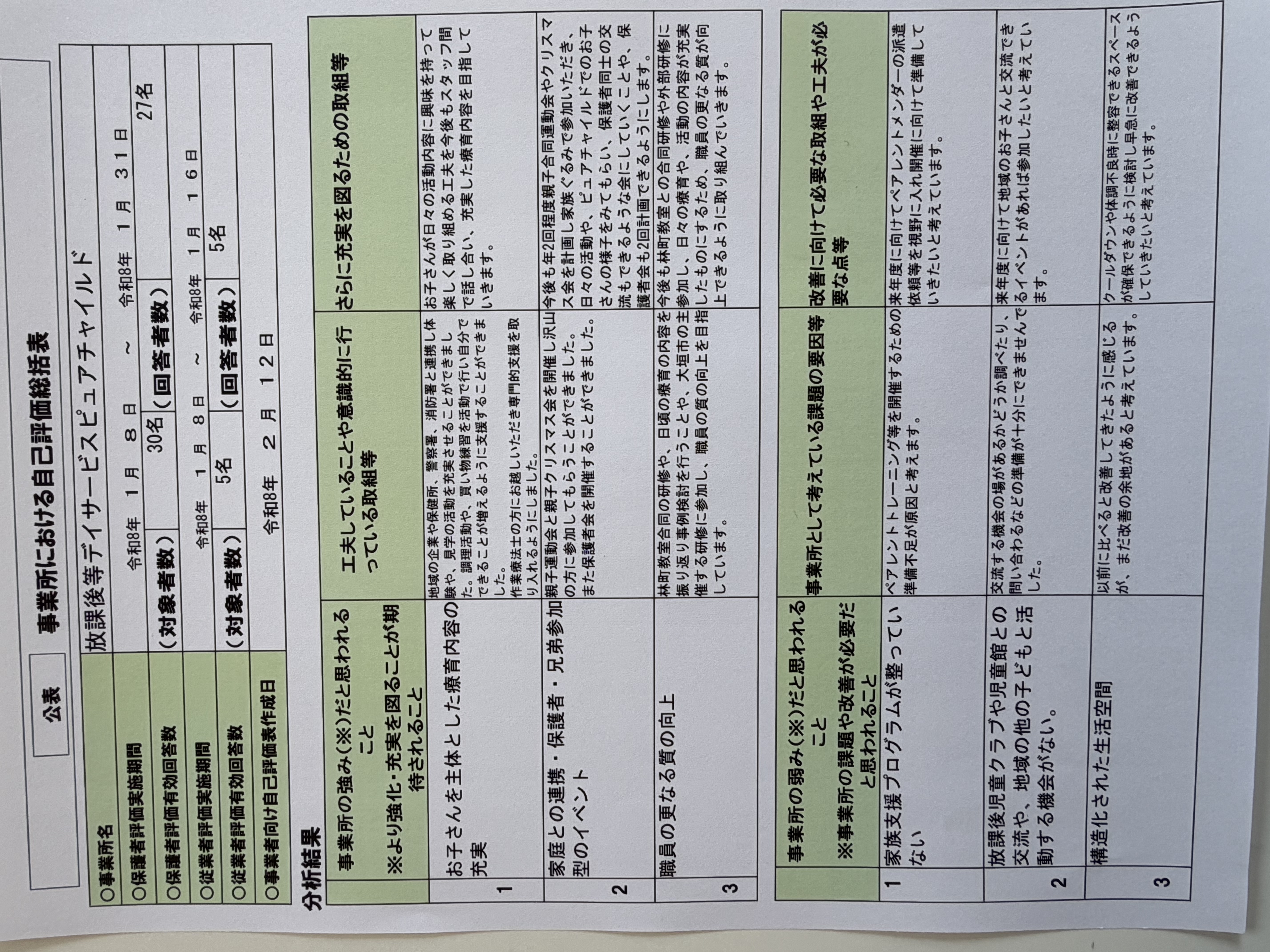 令和7年度保護者向け事業所評価表及び事業所における自己評価表の公表