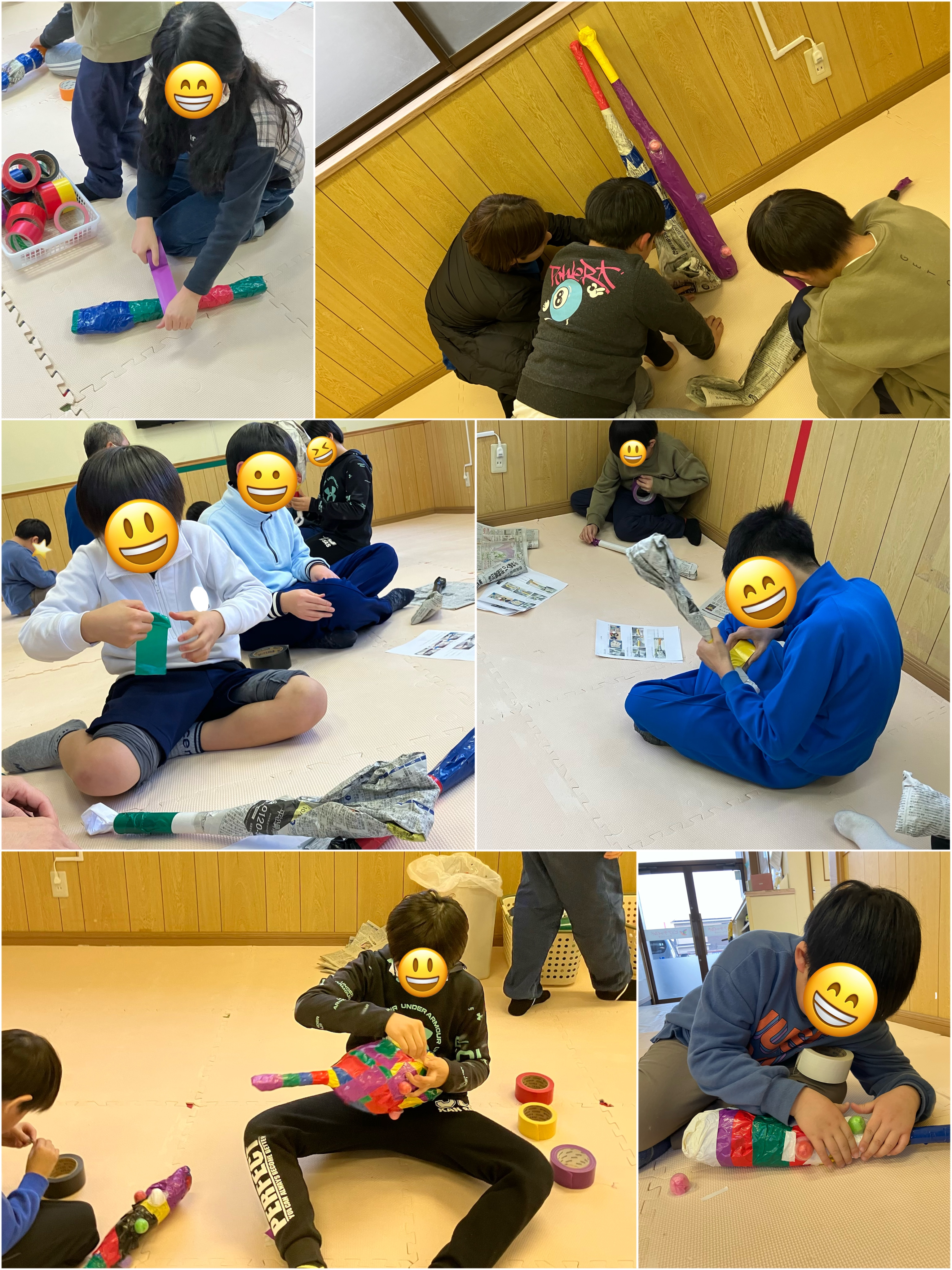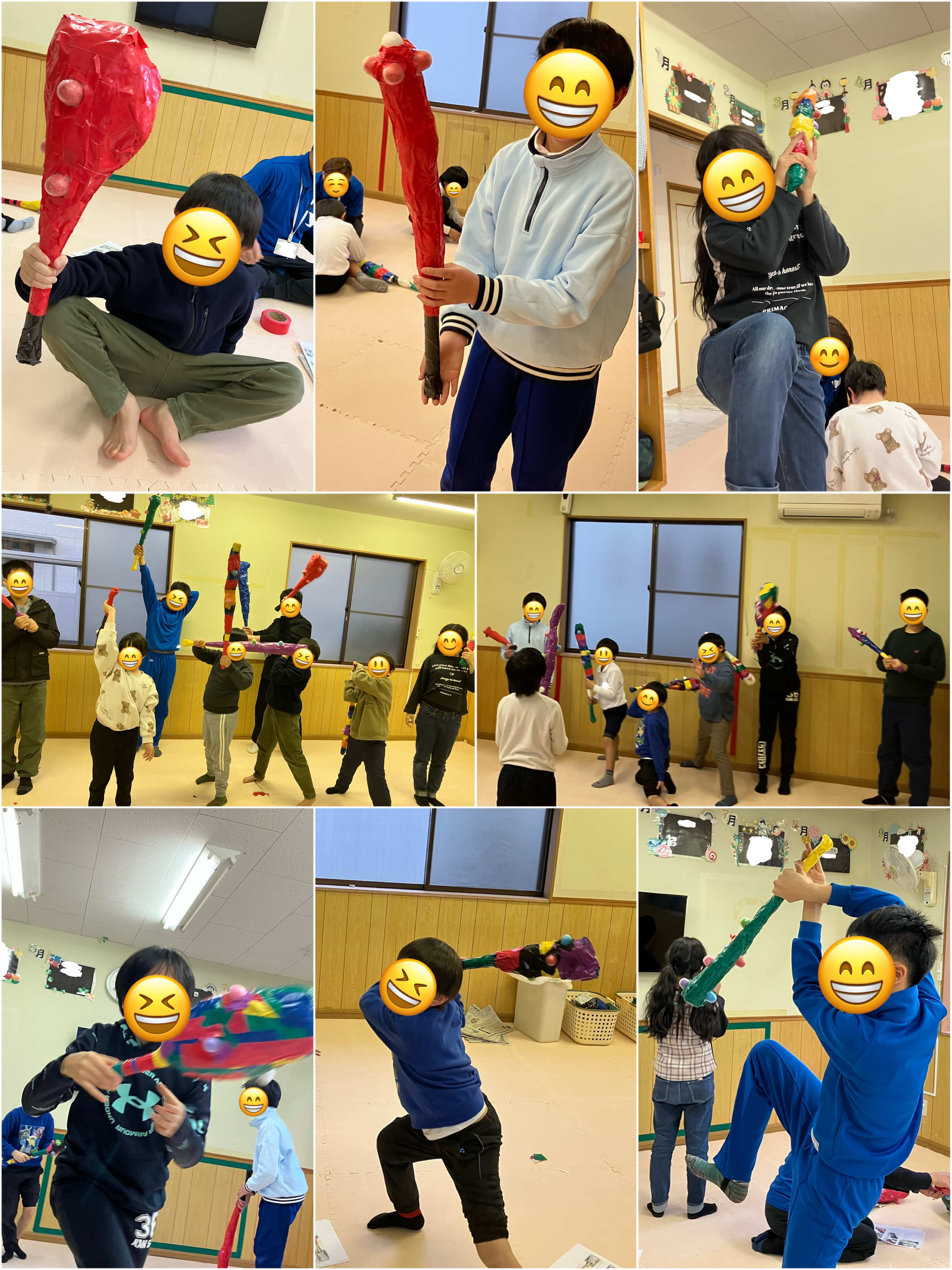 長めにしたお友達はバットのように構えたり、太めに作ったお友達は鬼の顔を真似して振り回していました😊
