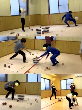 風船を気にしすぎると玉が入らず、玉入れに集中していると風船が落ちてしまう・・・。